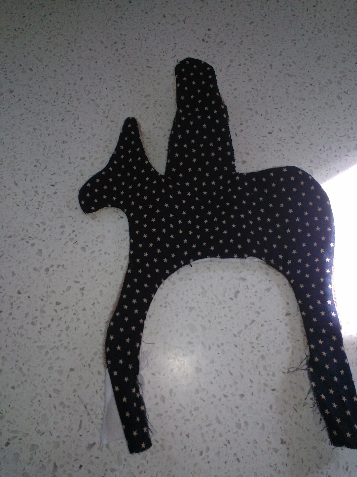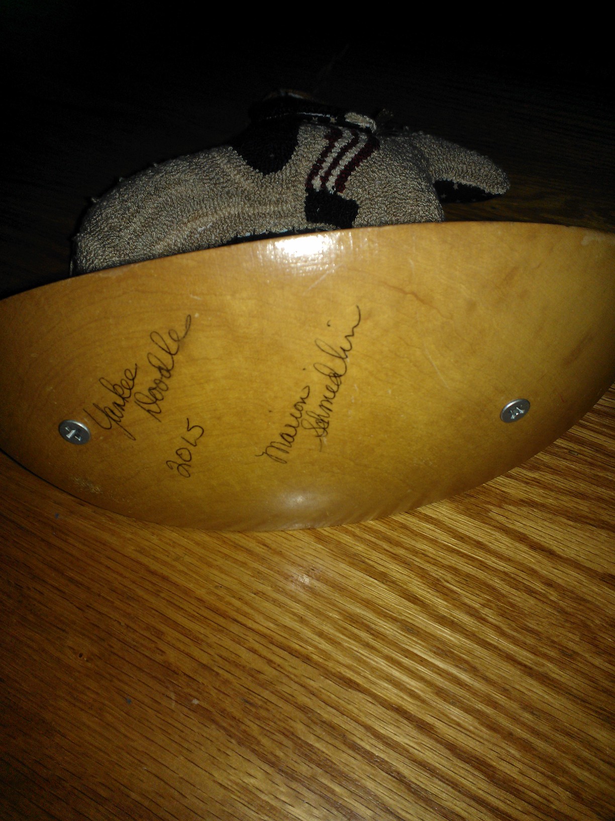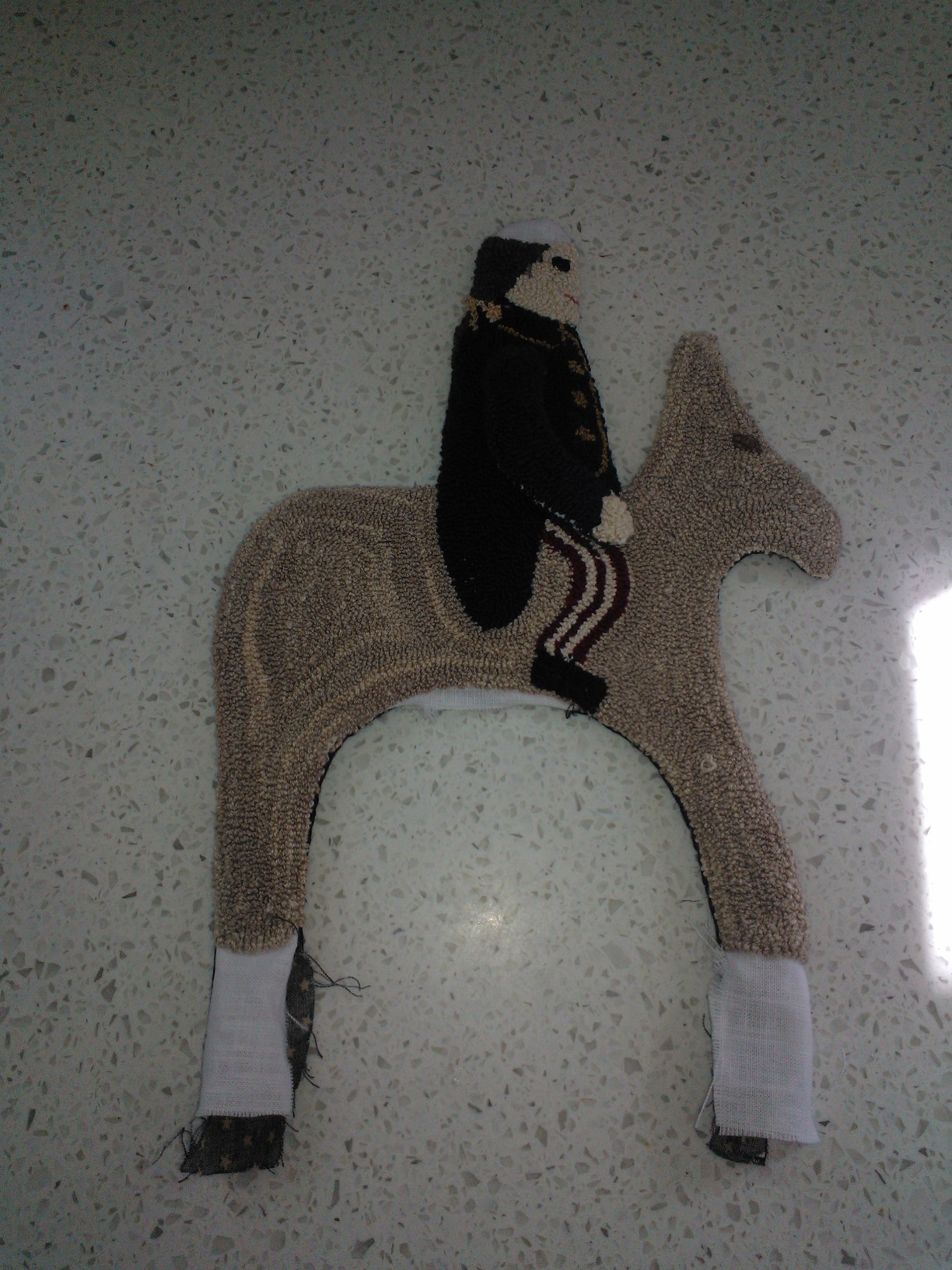 I used a wedge from a wooden bowl to create the rocker. After stuffing Yankee Doodle I used dowels run through holes in the rocker to attach.
