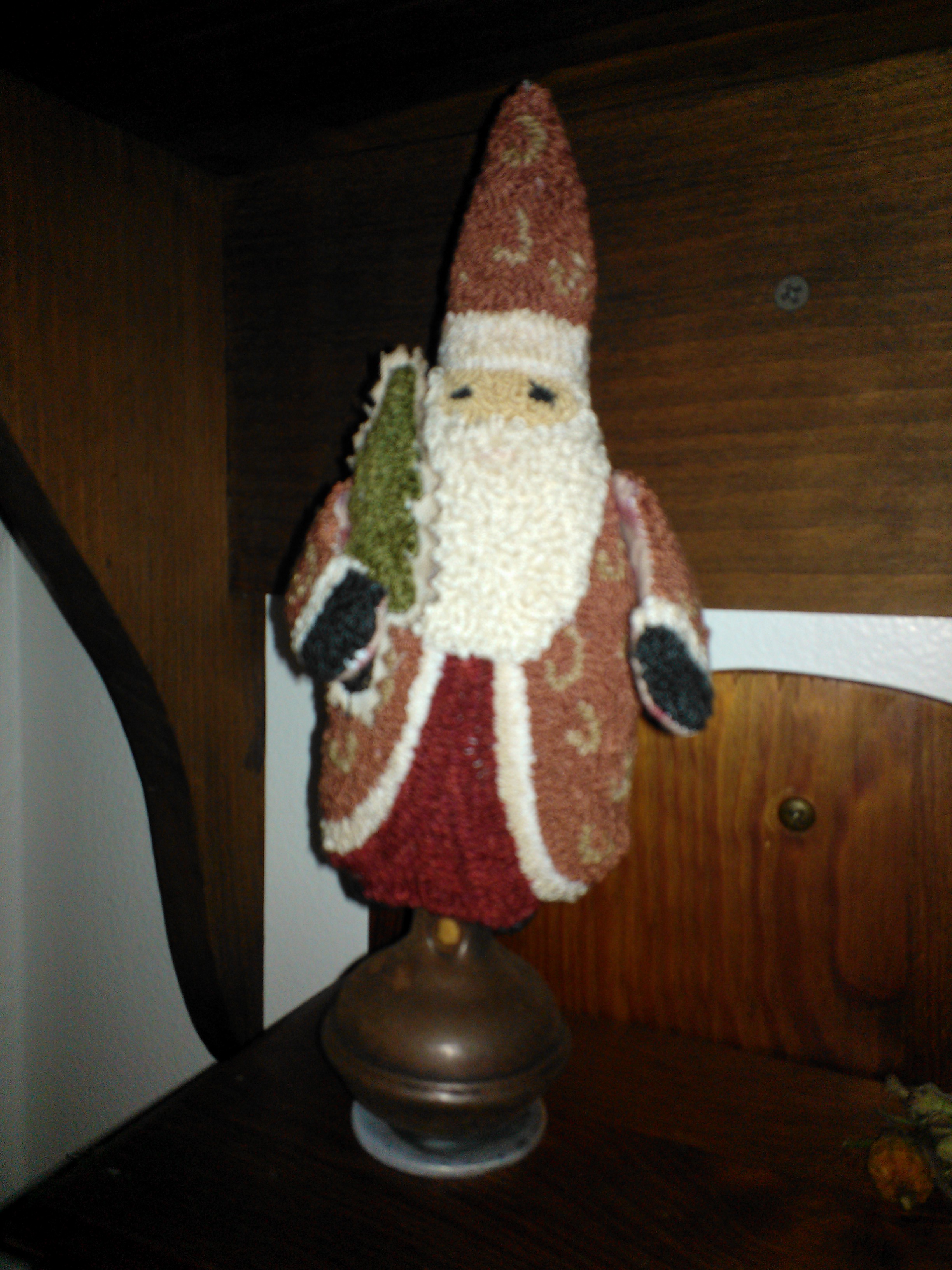 I wanted to try my hand at a Belsnickel Santa. My version could well be mistaken for a Santa gnome, but here he is. I had fun with him. I punched the arms separately and did not stuff them. It is always a challenge to invert pieces that small, but it is getting a bit easier. Again, patience is the most important part of the process. I increased the depth of his beard to #7. He has a tiny pink mouth slightly hidden by his massive beard.