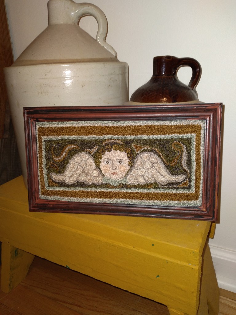 I want to share what I have completed. Here is The Messenger, from Donna Munson. This was a fun project and I finally got to use this frame. I’ve had the frame for some time and had painted it with my favorite burgundy distressed with black. I had to alter the pattern slightly and add more of the lighter color outside the gold. She’s a cute little angel and I’m really happy with how the eyes turned out.