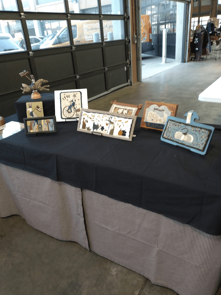 Greetings All. Today I’m taking from Facebook a memory they provided me. These pictures are from a show I did at Eastern Market last year. I see projects from Doreen Frost, Lori Brechlin, Colleen Collazzi and Cathy Sowers, as well as many of my own. You probably notice the prim theme running through the mix. I’m working on items for the Elf Shelf on the Saturday after Thanksgiving at the Troy High School. I’ll have more information later on. We’ll see what I come up with.Enjoy this beautiful sunny Monday.