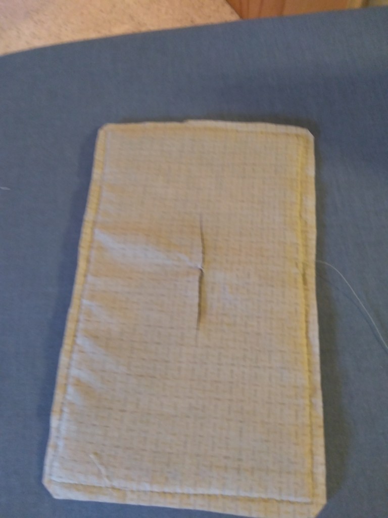I talked about methods of finishing pieces. This first picture shows a piece that will be mounted on a board. Note it is sewed completely around the perimeter and I cut a small slit. After I turned it right side out I steamed the edges. This one is also waiting for a coat of Briwax to dry before I attach it. Briwax is like Minwax, but has a slight tint of color.The second picture will be inverted and the opening will be hand-sewn. I usually leave the opening more centered, but this will be fine. I just want to show how I trim it leaving a longer piece of fabric to fold inside. It makes the hand sewing a lot easier.